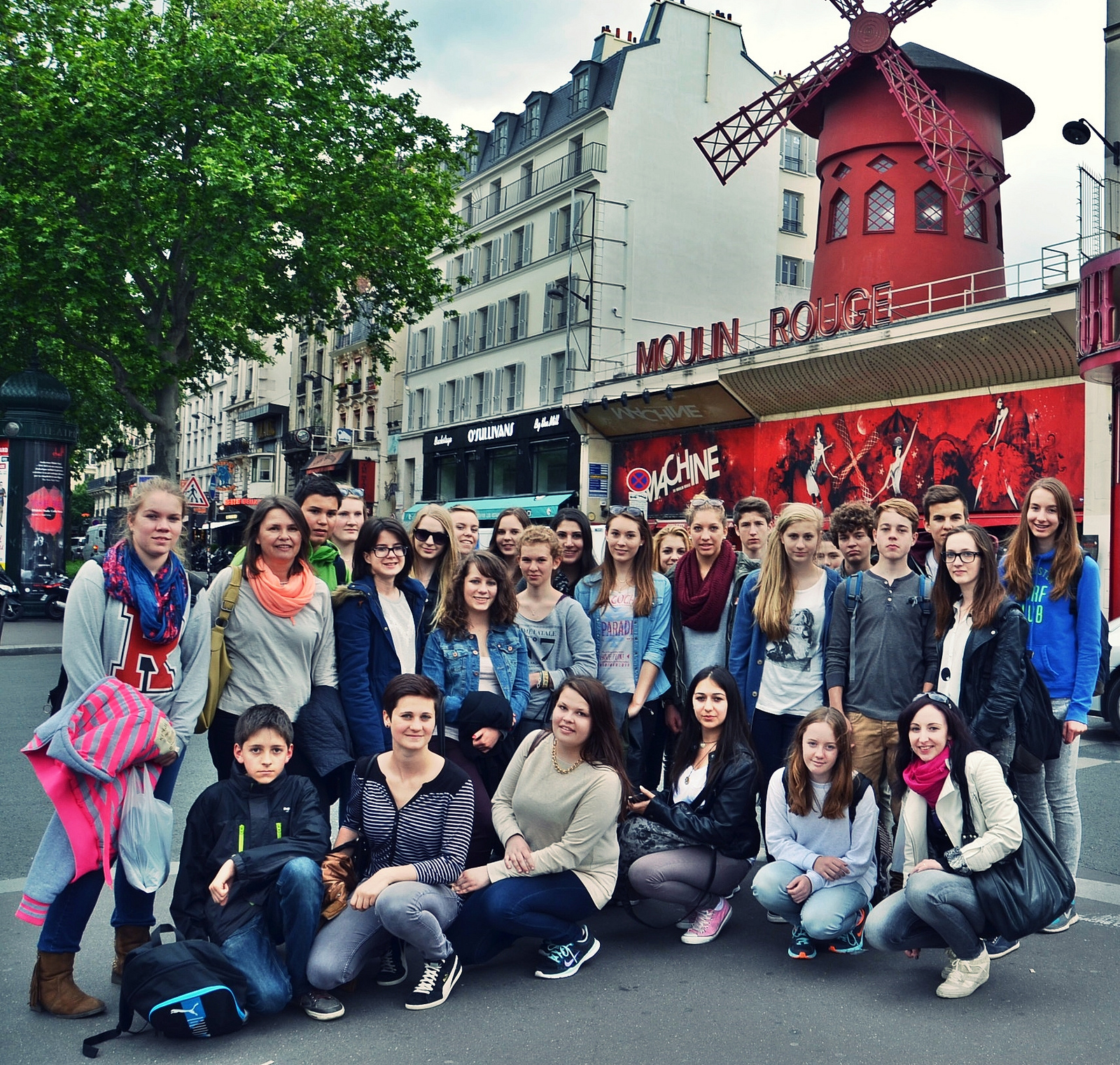 Le mardi matin nous nous avions rendez-vous à l’école et nous avons pris le métro pour aller à Montmartre. En sortant du métro, nous sommes allés au Square des Abesses pour voir le „Mur des Je t’aime“, puis nous avons continué à pied. Après être allés au manège en bas de Montmartre nous avons marchés jusqu’au Sacré Cœur. La vue sur Paris était fantastique. Nous avons admiré la vue et avons pris des photos, puis nous avons pris du temps dans les magasins de souvenirs. Avant de repartir nous avons pris une photo de groupe devant le Moulin Rouge.