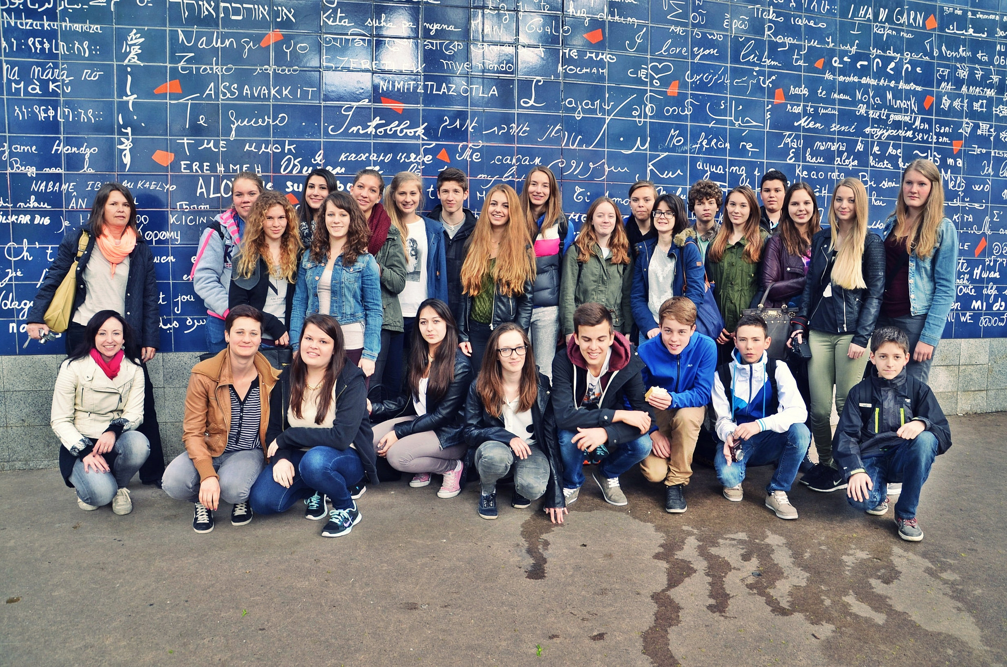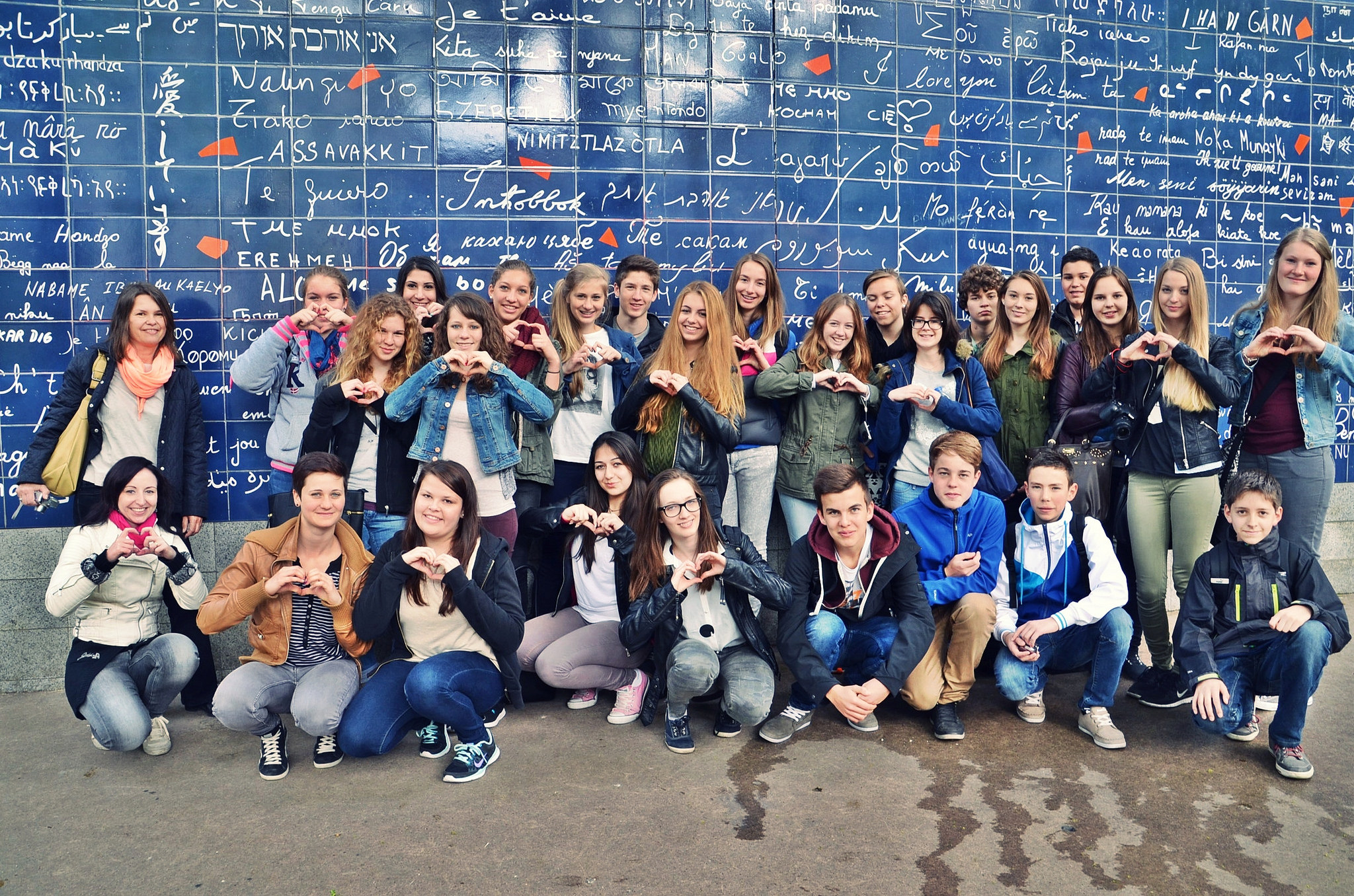 - Die deutschen Schüler vor der „Ich liebe Dich“ – Wand / Les élèves allemands devant le mur „Je t’aime“