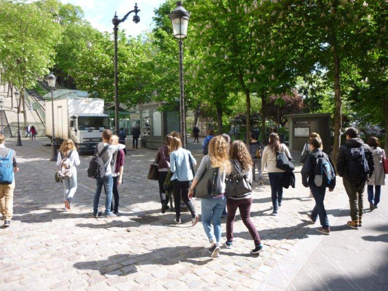 Am Dienstagmorgen haben wir uns an der Schule getroffen und sind mit der Metro zum Montmartre gefahren. Zuerst gingen wir zur „Ich-liebe-Dich-Wand“ am Square des Abesses, anschließend ging es weiter zu Fuß zum Sacre-Coeur. Nachdem wir kurz bein Karusell waren, sind wir zu Fuss den Berg hoch bis zum Sacre Cœur. Von dort aus hatten wir eine atemberaubende Sicht über Paris. Nachdem wir die Aussicht genossen und Fotos gemacht hatten, hatten wir noch Zeit in die Souvenirshops zu gehen. Auf dem Rückweg haben wir noch ein Bild vor dem Moulin Rouge gemacht.