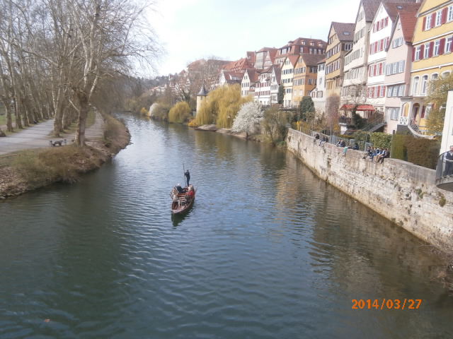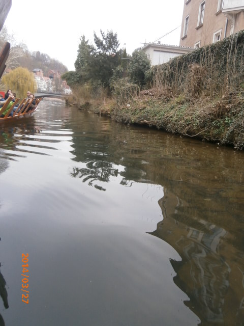 Aujourd´hui nous avons été dans un typique bateau souabe, du nom de „Stocherkahn“. Dans la ville de Tübingen. Nous étions séparés dans deux groupes avec deux bateaux. Deux pagailleurs conduisaient les bateaux.. En plus il y avait du soleil. C´était un très bon moment!